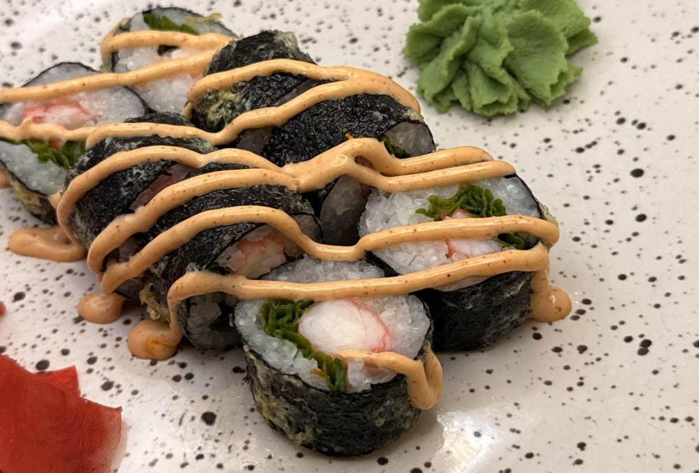рис, нори, креветки, соус спайси, яйцо куриное